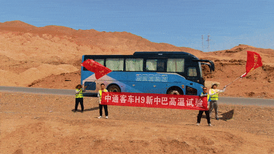 在吐鲁番高温试验基地,中通H9历经近一个月的全方位试验,对车辆的操作系统、驱动系统、热管理系统、空调系统等方面的稳定性与耐久性进行了全方位验证。