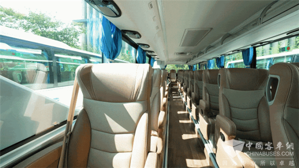 深耕高端旅游客运市场,坚持差异化竞争策略,宇通“2+1”高端旅游客车,36+1座椅布局,商务座椅舒适美观,乘坐空间更大,更适合中小型高端旅游团;行李架私密舱、车规级USB、车载冰箱、车载饮水机等高端配置,多重人性化设计,将品质渗透于每个细节,进一步提升服务质量,为乘客打造高端出行体验。