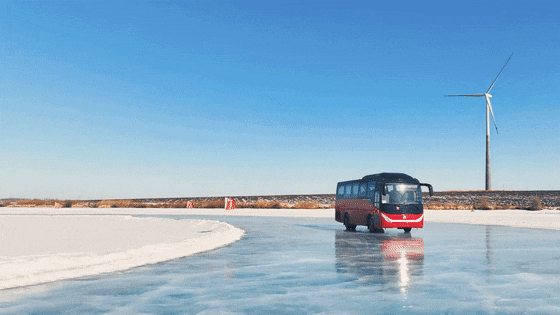 此次试验在黑河北安市极地汽车高寒试验场进行,涉及采暖、除霜、制动、操纵、低温冷启动、环境适应性等十余项测试项目。历经45天,中通H9“冰上漫舞”,展现出极致的产品性能。