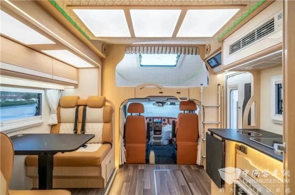 安全性上,三款房车不仅主被动安全配置丰富、久经检验,而且在车身结构上还充分吸收了安凯全承载车身的技术精髓,采用高强度铝合金封闭环厢式车身结构,并配合电泳工艺,在兼顾轻量化与安全性的同时,大大提升车架防腐性能。