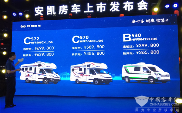 2023年6月30日,深耕客车行业多年的安凯客车面向旅居房车领域发布了C型双拓房车C572、C型无拓房车C570及B型房车B530三款全新产品,售价区间覆盖36.58万元-69.98万元,让更多向往房车露营的朋友们能以更优的品质、更高的性价比拥抱房车生活。