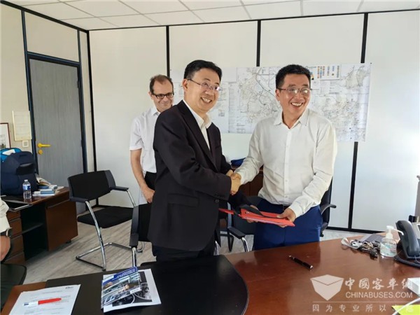 肖高华此行第二站来到法国进行市场调研和客户拜访。在法国,肖高华先拜访了巴黎公交RATP大都会总部,就双方未来合作方式进行了深入交流,并签订智能驾驶客车订单。之后,肖高华试乘了由中车电动提供的智能驾驶纯电客车的393智能驾驶开放运营线路。