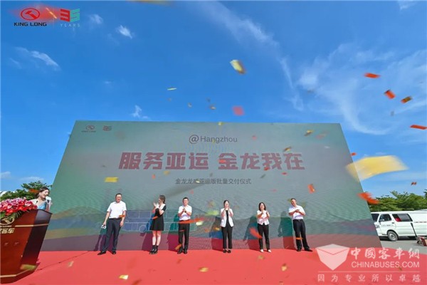 金龙一直以来都致力于为国内外重大赛事提供交通保障,此次金龙全力支持杭州亚运会的举办,70台金龙龙威II代亚运版为本届盛会提供优质的交通保障服务。交付仪式在厦门金龙联合汽车工业有限公司举行,此次交付的70台金龙龙威II代亚运版以需求为导向,为杭州亚运会提供定制化服务,扩大产品性能优势,针对亚运会接送服务做了相应的优化,以便更好地提升出行体验,为驾乘人员带来更加高质量、智能化、人性化、精细化的亚运感知体验,实力诠释中国智造魅力,为运动员、媒体和观众提供便捷、高效的交通服务,保障安全出行。针对此次亚运会,金龙也将派专业售后服务团队参与亚运服务保障,在车辆交付之后提前储备相应配件,做好培训和车辆健康体检等活动,安全高效地服务亚运会。