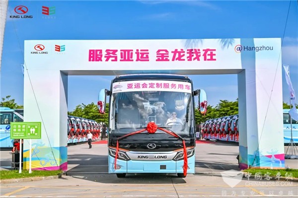 作为中国客车行业的领军企业,金龙客车勇挑重担、实力护航,70台金龙龙威II代亚运版成功交付杭州,为本届亚运会提供优质的交通保障服务,助力盛会圆满举办。