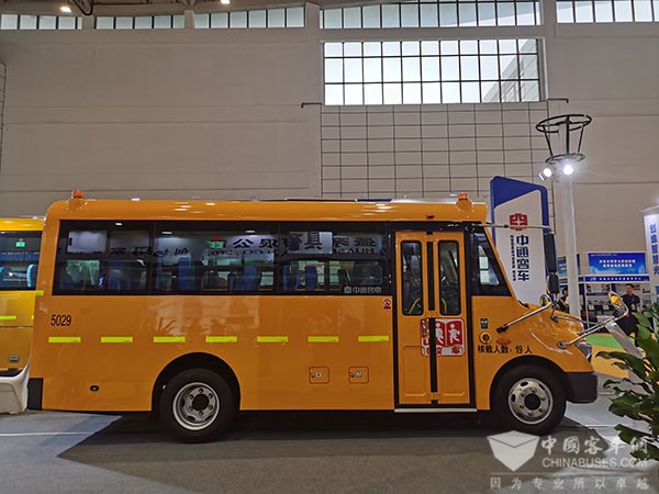 亮相本次展会的中通LCK6106D6Z1是行业首款自动挡校车,车长10.4米,专为中小学生量身打造。针对校车频繁起步、倒车、转弯等复杂场景,中通客车潜心研发,打造行业首款自动挡校车,降低了驾驶员的操控工作强度,行车更安全,学生乘坐体验更舒适。