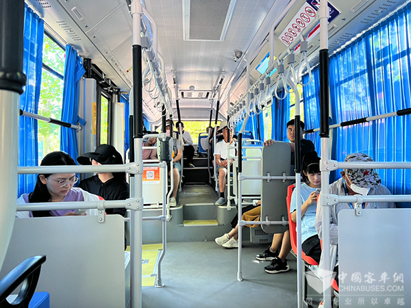 当车辆起步,氢能的优势体现得淋漓尽致。每次车辆进站停靠、起步,我们都可以感受这款氢能公交车快速的起步和平稳的加速,整个过程没有任何卡顿、顿挫,非常平顺,也让乘客的乘坐体验非常愉悦。车辆采用无级变速器,换挡非常平稳,几乎感觉不到变速的过程,不容易晕车,老少乘坐都舒心。