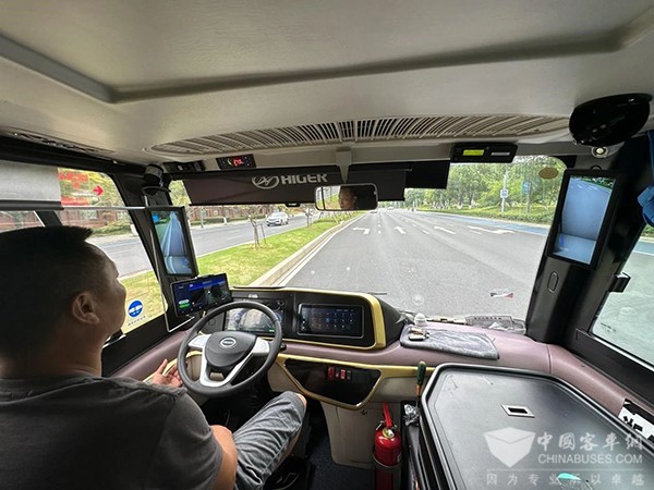 坐上海格“清源”无人驾驶小巴,车厢内座位舒适,空间宽敞,运行平稳,清凉安静。只见车内的安全员坐在驾驶位上,但是并没有进行任何驾驶操作,无论是车辆启动、停止,还是途中超车,等候红灯,以及避让车辆和行人,安全员的双手始终都是离开方向盘的。原来无人驾驶车内的安全员已经摆脱了踩油门、刹车、换挡等传统驾驶操作,主要工作是实时监控车辆的自动驾驶情况。