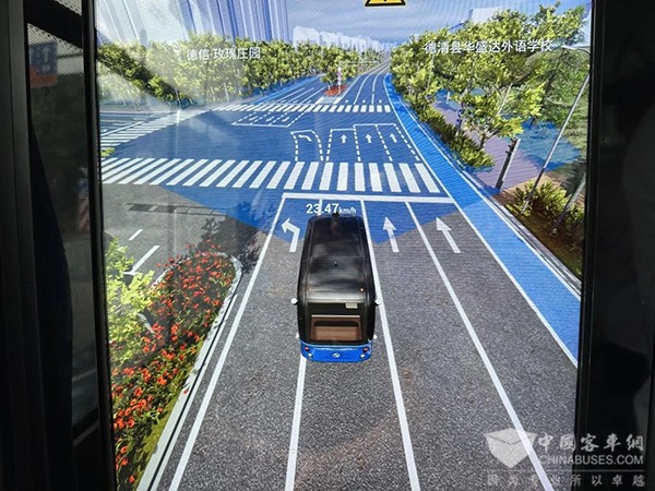 苏州金龙海格“清源”小巴车内的屏幕实时显示当前的行车路线,车辆以不超过50公里的时速平稳行驶,遇到车辆超车并线和红灯时,“清源”小巴会灵敏感知并缓缓停下,然后再平稳起步运行。该条5G智慧公交环线长10公里,共有9个站点,往返于德清体育中心和德清地理信息小镇篮球场这两座亚运竞赛场馆,为即将举办的亚运会增添了浓浓的智能科技色彩。