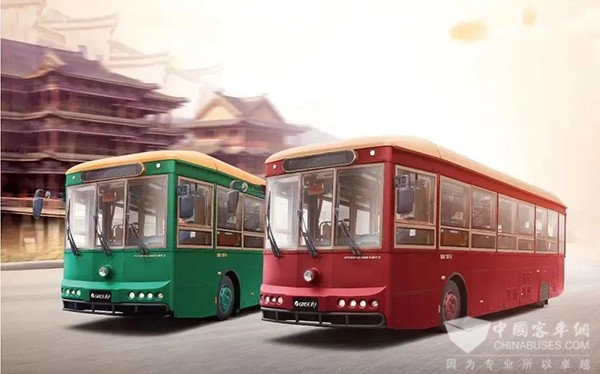 格力钛新能源海豚公交车,以传统“中国红”为主色调,突破传统公交方脸造型,适用于城市快速路、主干道等线路,成为流动的红色文化载体,诉说着各地久经岁月繁华。