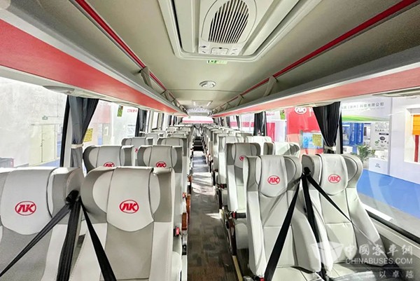 此次参展的11米纯电动A6客车,整车造型圆润饱满,线条流畅,极具时尚感。车内设施遵循人体工程学设计,布局宽敞明亮,细节体贴入微,为乘客打造最舒心的乘坐环境。