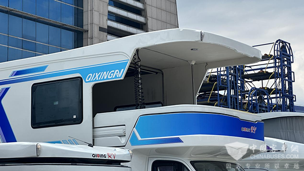 全电动化的升降厢体结构,成熟可靠的后拓展结构,以及创新的内外两层壳体结构(外层壳体可升降,驻车升起后,实现叠墅复式面积拓展),极大的拓展了房车的使用空间,奢享近乎20平方米的蓝牌房车,让墅质旅居触手可得。