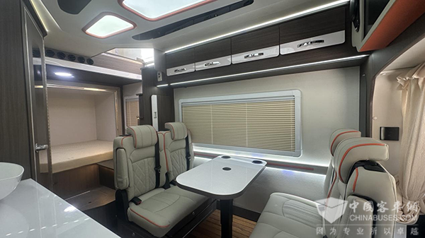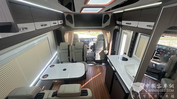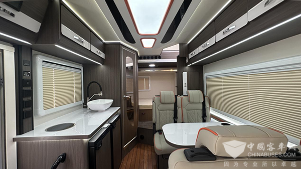 内饰方面,车辆配有屋顶星空灯等温馨软装;桌椅布局采用的是经典四人对向卡座设计;室内吧台提供车内简餐,搭配户外柴油灶更可实现大厨自由;宽敞的卫生间,满足旅行的洗漱与衣物换洗;电视、双冰箱、音影娱乐、行车驻车的双系统集成空调、燃油暖风热水系统、可拓展的后床铺等旅居生活设施一应俱全,在行驶、降低状态下,一样可以满足我们的日常旅居生活。