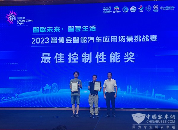 比赛主要的技术策划、赛事执行人——招商局检测车辆技术研究院有限公司技术委员会常务副主任曹飞表示:比赛主要针对商业落地需要,在实际交通场景中开展城市车辆比赛测试,在全国尚属首次!本次比赛共设四条赛道,驰睿参与的自动巴士赛道从神女湖广场到永川火车东站,长4.5公里,在城市道路不封路工况下,通过主动设置车辆灯控路口通行、车道保持、车道变换、路口转向、公交站点停靠、占道停车避让、坡道通行等城市场景,比赛车辆与自由交通流混行,全面考验自动驾驶公交应对随机偶发性事件的综合能力。最后,经过资深的行业专家组成裁判组严苛的打分,驰睿在车辆感知算法、决策、控制、安全等多项考核评价指标上表现优异,对多种突发状况应对自如,获得裁判组的高度评价,斩获“最佳控制性能奖”,可谓实至名归,实力担当。
