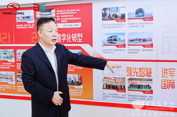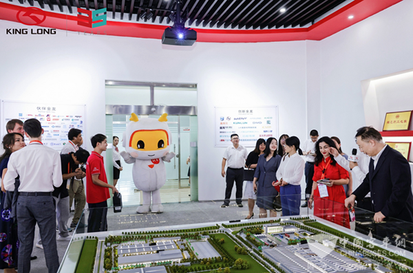 中亚中心媒体代表团一行人先后走进金龙企业文化长廊、金龙数字展厅,驻足聆听。深入的了解金龙的发展历史与科技创新,近距离感受金龙的品牌实力和科技创新技术,明白到品质是品牌的生命力。金龙一直坚守对品质的追求,凭借良好的产品品质和高标准的服务成功扩展海外版图,多次斩获塞浦路斯、沙特阿拉伯、埃及等国家和地区的批量订单,递出“中国制造”的烫金名片。