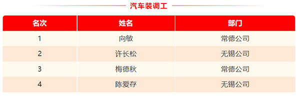 根据比赛安排,各工种第一名授予“中车电动技术标兵”称号、35岁以下的选手还授予“中车电动杰出青年岗位能手”称号,二、三名授予“中车电动技术能手”称号。