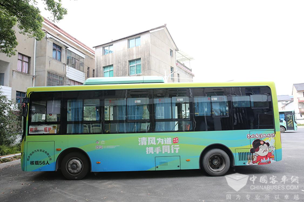 绿色新能源,具有时尚的车身外观、舒适的车厢座椅以及各种贴心便民装置,海格蔚蓝KLQ6816亮点多多,主打一个绿色、便民、高品质出行保障。走进一看,可以发现,作为桐庐公交运营主力车型之一,海格蔚蓝纯电动公交不光有颜值,更有硬实力,在车辆智能化、安全性、高效性以及细节人性化等方面均有不俗表现,引领城市公交再上新台阶。不仅如此,这也是桐庐县首条“小莲清风专线”,成为当地清廉文化阵地主题巴士代表,从车身可以看见与杭州主城区同款的清风主题装饰,共建“以清为美、以廉为荣”的良好社会风尚,被当地市民誉为可爱“小清新”。