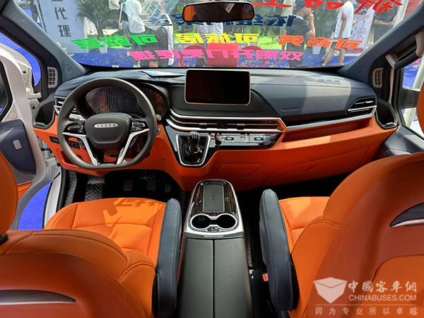 坐进驾驶舱,聚星房车的12.3寸高清触控大屏搭载了第3代IVECONNECT智能交互系统,集成腾讯TAI、车载微信、智能导航、可生长模式(FOTA远程迭代升级)等功能,支持语音交互,灵活触控,为用户带来轻奢驾趣。而车辆中间多功能扶手箱,设置手机无线充电、水杯拖,制冷冰箱于一体,十分方便,累了可以随时喝到冰爽的饮料。
