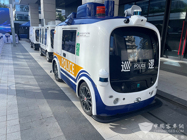 数字车城,加速建设。福州新区的多种数智场景除了无人驾驶公交+网约车外,无人化配送、智慧停车、智慧安防等也在逐步建设应用中。本次示范测试,与自动驾驶微循环公交XMQ6601G同场亮相的还有金龙GAPA自动驾驶安防车和智能移动数字冷柜车,GAPA自动驾驶安防车是金龙实现的第二代产品研发下线,能更智能地实现园区内的巡逻监控、视频记录、异常报警等无人化安防作业,其配备的云台摄像机高度可升至2.7米,在人群密集等场景依然可以获得良好的视野,轻松识别人物外貌特征与衣着行为,以及进行车牌黑白名单识别、车辆违停、区域入侵等智能警戒,与诊断交互平台实时协同,实现安防的数字化、可视化、智能化的构建,省心、省时、省力,让人感受数字安防带来的安全感与无限魅力。