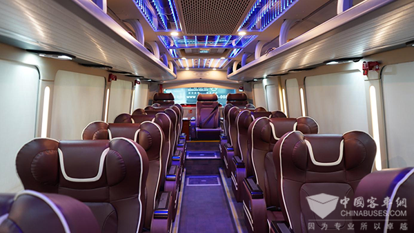 “我们要做市场的引领者,而不是跟随者。这款车与众不同,主打的就是尊贵体验。”走进金旅为中信旅游精心打造的1+1高端旅游车型,可以看见:无论是座椅间距,还是车内空间,都是考虑到后疫情时代车型的需求变化,营造更私密的空间。车辆配备高档商务座椅、温馨舒适氛围,并拥有豪华TV娱乐系统,满足冬天热水、夏天冷饮,且还有夜间模式等,营造超舒适体验感,打造的就是真正VIP服务,为旅游出行加分,让乘客享受动车商务级高标准服务,舒适如家。