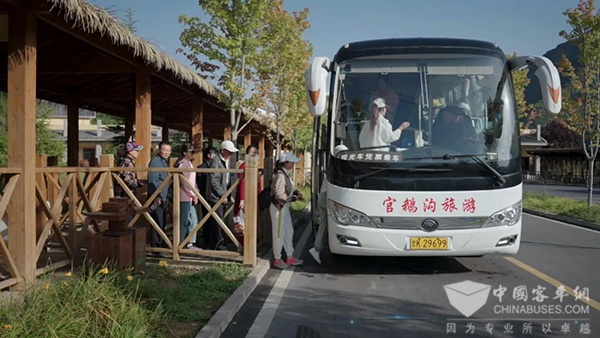 官鹅沟景区地处青藏高原边缘和岷山山系与西秦岭延伸交错地带,海拔高差悬殊,山高弯路多,十分考验运营车辆的性能。2017年底,56台宇通纯电动客车进驻官鹅沟景区,一部分作为景区观光车使用,另一部分负责从高铁站到景区的接驳,整合区域内资源,将各个景区串点成线、连线成网,打造“一站式新能源交通服务解决方案”。