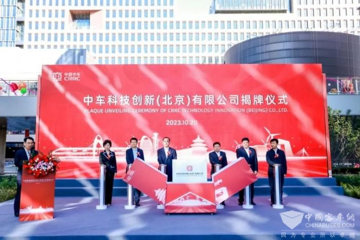 为深入学习贯彻习近平新时代中国特色社会主义思想和党的二十大精神,纵深推进新时代人才强企战略,加快建设中车人才高地,2023年10月20日,中国中车隆重举行中车科技创新(北京)有限公司(下称“中车科创公司”)揭牌仪式。国务院国资委企业领导人员管理一局(董事会工作局)有关负责同志,中关村科学城管委会副主任、北京市海淀区副区长武凯以及海淀区东升镇、东升农工商总公司、东升科技园公司、鹍鹏农工商公司等单位嘉宾应邀出席科创公司揭牌仪式。中国中车领导班子成员,中车总部部门负责人及以上领导干部,各有关子公司负责同志等参加揭牌仪式。