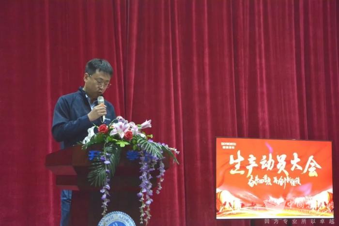 集团常务副总裁董钊志先生做了“坚信明天,活得更好”的激情演讲,美好的生活都是奋斗出来的,精彩的人生都是拼搏出来的,在这艰巨而伟大的目标的召唤下,任何困难都难不倒开沃铁军,我们必将用实际行动来证明,开沃铁军战无不胜!
