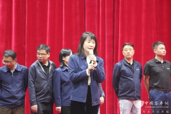 集团副总裁兼乘用车事业部总经理吴龙八、集团副总裁钱瑞瑜,集团副总裁兼大客事业部总经理李江、集团副总裁兼轻商事业部总经理江民、零部件事业部总经理孙健、集团常务副总裁董钊志,客户服务中心总监毛文峰分别代表各业务板块发布了生产动员令,亮明指标,标明奖励,黄宏生董事长等领导分别为其授牌及颁发奖励。