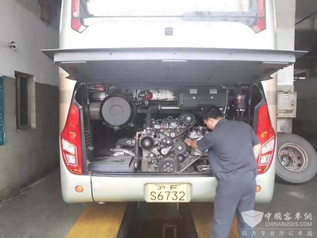 苏州金龙上海售后服务团队对进博会保障车辆进行维保检查