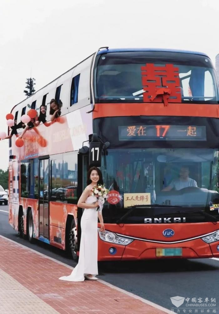 近日,在烟台、海口等地就开启了一种新颖的接亲方式,推出了独具特色的“公交婚车”定制服务,为喜庆的婚礼增添了别样的风采。而承载这一美好服务的安凯双层公交巴士,不仅肩负接送新人的神圣职责,更成为传递甜蜜爱情的宣传大使,穿行于城市的大街小巷,将幸福的气息、芬芳的爱意传递给沿途的每一位市民。