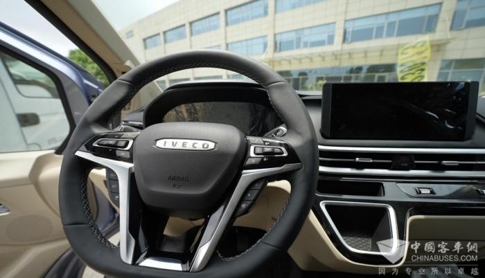 进入车内,聚星多用途乘用车仪表台层次分明的环抱式设计和隐藏式出风口看着很有档次。大面积软包材质的运用及拼色的设计,触感极为舒适。该车还配置了四幅式多功能加热方向盘,10向可调电加热座椅,以及通过NVH静音工程的运用,带来了“剧院级”的静谧空间。此外,12.3寸高清触控大屏搭载了第3代IVECONNECT智能交互系统,集成了腾讯TAI、车载微信、智能导航等功能。一句“你好,小依”即可唤醒AI,实现座椅加热、空调开关及调温、玻璃升降等。先进的车机系统和更多的舒适化配置,无一不在彰显着它的乘用化风格,深受年轻用户喜爱。