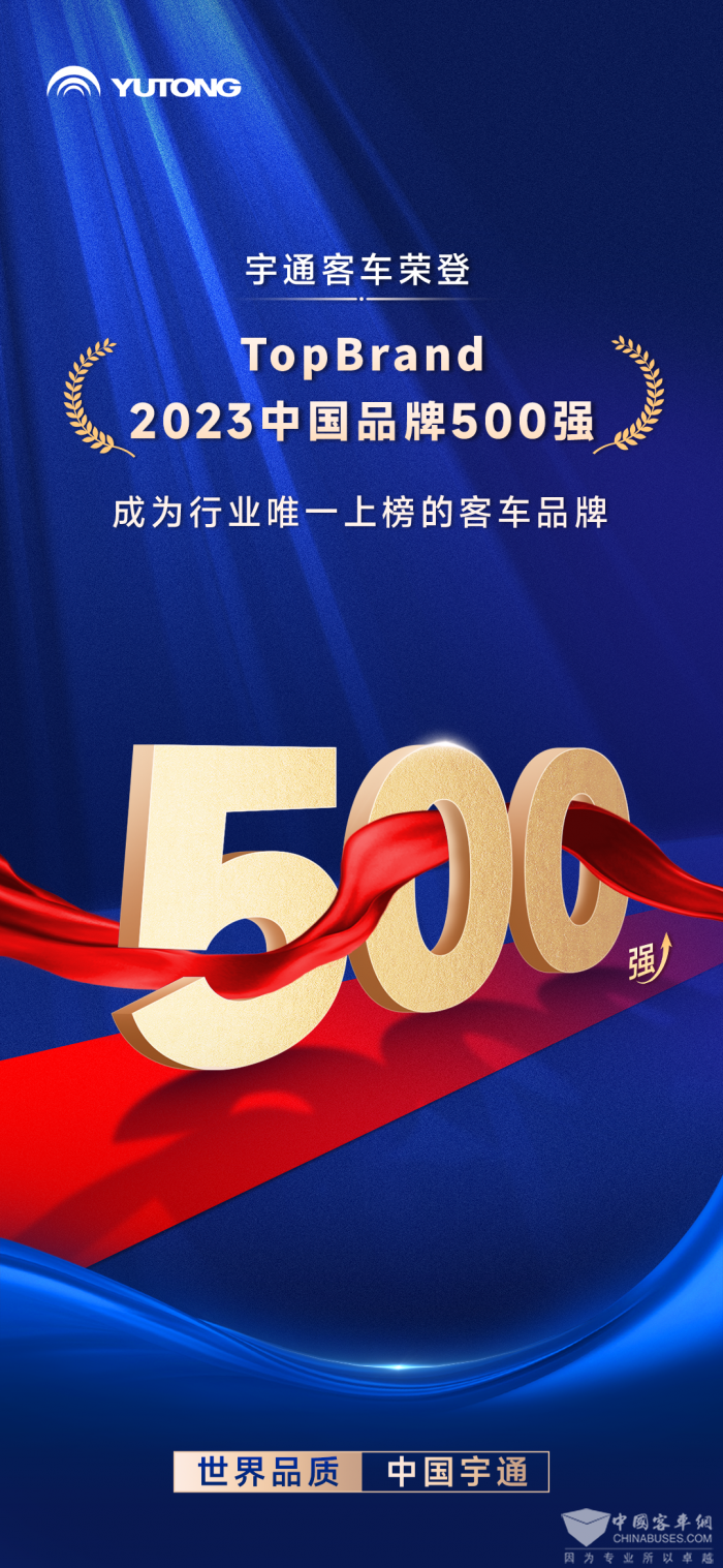 客车行业独一家!宇通客车入选2023中国品牌500强