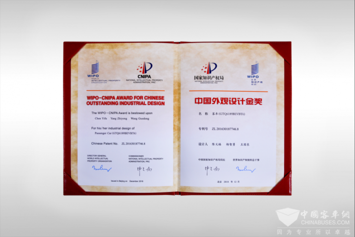 2018年底,格力钛新能源18米海豚公交车荣获“中国专利奖 ——外观设计金奖”,成为新能源汽车行业唯一入选的产品 。