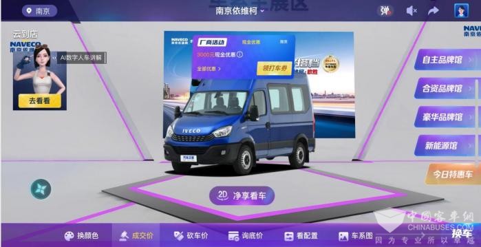 为了给予用户有趣便捷的购车体验,南京依维柯一直致力于探索更多新颖的玩法与用户互动,让用户足不出户也能看车购车,如联手汽车之家打造云车展活动,3D虚拟技术、多场景互动的VR展馆、AI数字人车讲解展厅等诸多功能让用户直呼过瘾;打造依维柯数字展厅,抢先看最新车型,还能get优惠活动;推出全国一站式的官方体验平台“依家房车”,车型介绍、价格指导一目了然,有中意的房车款式还可在线预约试驾,功能贴心又齐全。