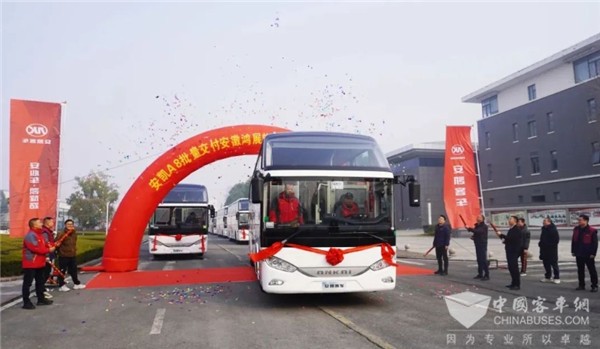 安徽鸿展旅游汽车服务公司(以下简称“安徽鸿展”),正是勇于迎接挑战、善于发掘机会的探路者。12月28日,批量高端A8客车正式交付安徽鸿展,助力其提升客运服务水平、不断开拓经营模式,向着高质量客运企业加速迈进。