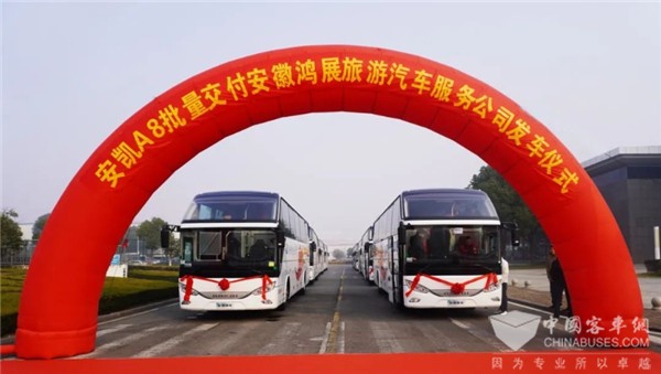 此次交付的A8客车是专为中长途公路客运、团体通勤、旅游租赁等市场打造的高端产品,能够实现“一车多用”“随需而变”,充分满足安徽鸿展多元化的经营需求,并将作为企业通勤班车投入使用,再次彰显了安凯深厚的产品实力。
