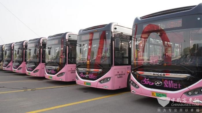 临汾是国家公交都市建设示范城市,也是山西第一个实现公交100%纯电动化的城市,绿色发展底色鲜明深厚。今年下半年,64辆外观靓丽、内饰精美的苏州金龙纯电公交正式投入山西临汾。该批巴士拥有着红、绿、蓝、紫、粉等多种配色,根据颜色被分别投放至文旅专线、爱情巴士专线、爱老敬老专线以及城市微循环公交线路中,五彩斑斓的色彩化身“七彩巴士”,在方便百姓出行的同时,打造有亮点、有特色、有温度的临汾公交品牌。走进临汾,可以看见一辆辆行驶的公交车早已成为城市一道道生动风景线,从15路的520爱情巴士,到23路的幸福巴士,靓丽的涂装、鲜明的线路特色,在打造高品质出行服务的同时,也在吸引更多人尤其是年轻人乘坐公交。