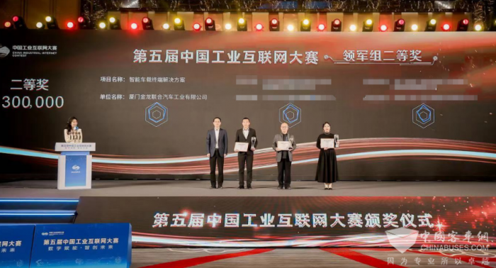 近日,由工业和信息化部、国务院国有资产监督管理委员会、中华全国工商业联合会、浙江省人民政府主办的第五届中国工业互联网大赛全国总决赛在宁波落下帷幕。来自福建的厦门金龙联合汽车工业有限公司(以下简称“金龙”)智能车载终端解决方案击败众多大型央企,在“领军组”全国1024个参赛方案中斩获第二名,这也是在“领军组”中唯一进入全国百强赛的福建参赛项目。