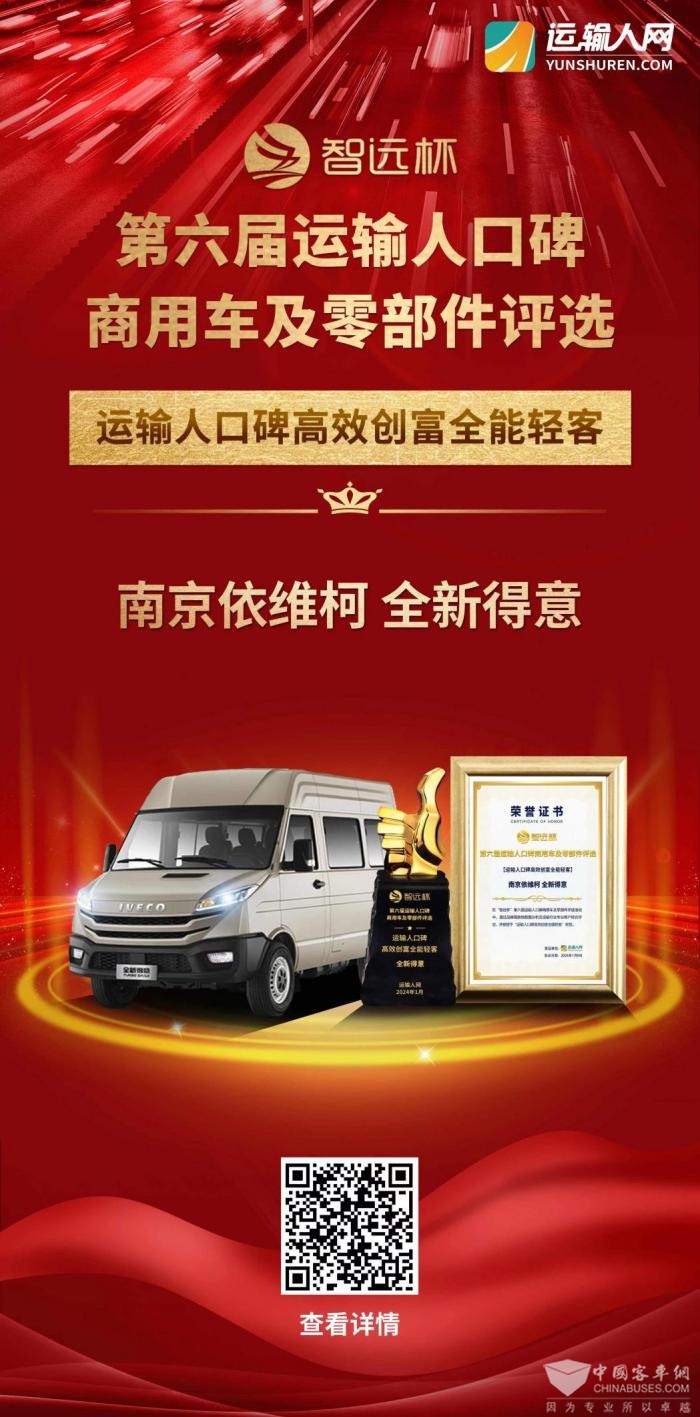 2024年1月,行业瞩目的“智远杯”第六届运输人口碑商用车及零部件评选活动隆重举办,依维柯得意凭借可靠品质和出色口碑脱颖而出,一举摘得““口碑高效创富全能轻客”奖项!