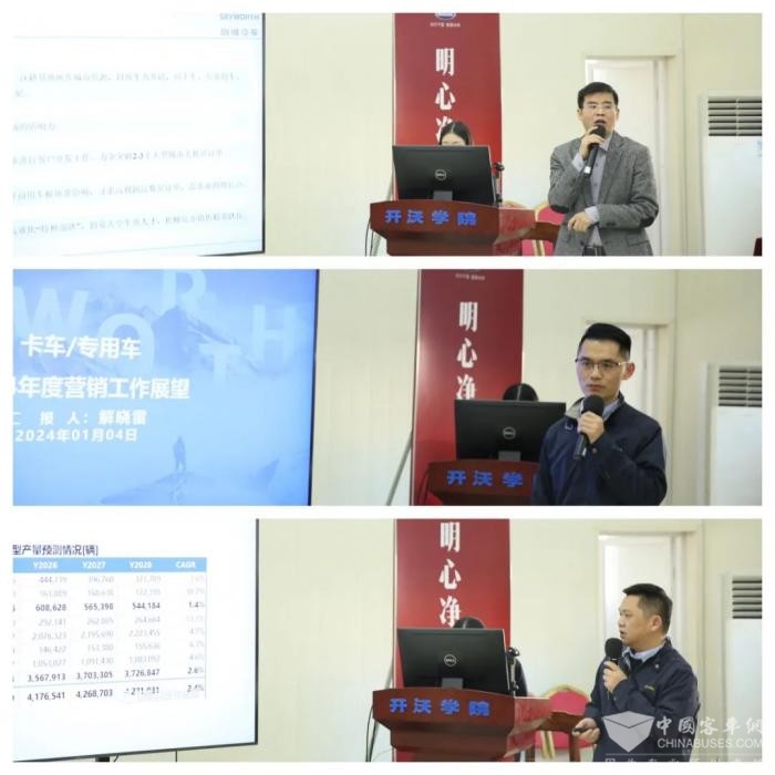 开沃集团商用车事业部客车、卡车、轻客板块及专项市场负责人对2024工作作出展望,明确2024年业务目标,确保目标具有可实现性、挑战性和时限性,以激发团队的动力和执行力。