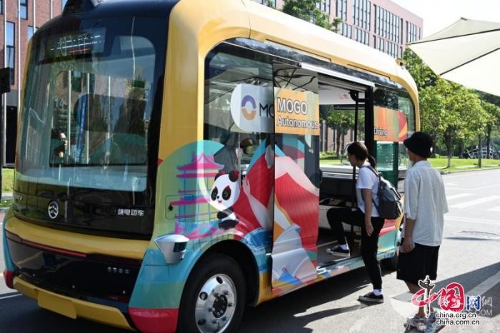 金旅星辰自动驾驶客车在北京翠湖湿地公园