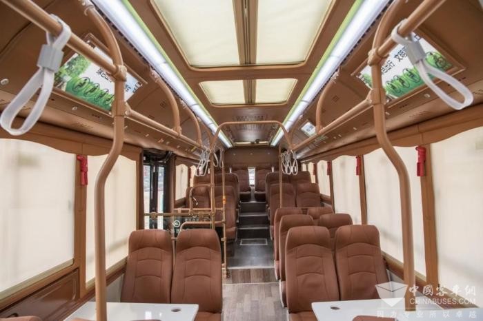 走进风景巴士内部,各种人性化配置也尽收眼底。风景巴士拥有超大的视窗空间、豪华航空座椅,皮制座椅,宽大舒适,包裹性极佳,座椅旁皆配有USB充电接口,搭配车厢小桌,能够带给乘客更好乘车体验。在全景天窗加持下,重庆两岸风光也能尽收眼底。