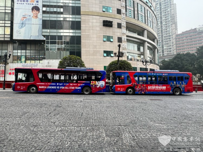 重庆交开投下属的重庆公交集团二级运营公司重庆西部公交、润天文创首次尝试“体旅融合、以体促旅”,进行强强联合,精心打造了6辆主题观光巴士,为参与本场赛事的巴塞罗那传奇队长卡莱斯·普约尔、“罗马王子”托蒂、史上首个获得双料足球先生的后卫球员法比奥·卡纳瓦罗等传奇球星打call。