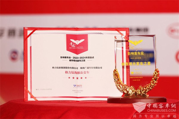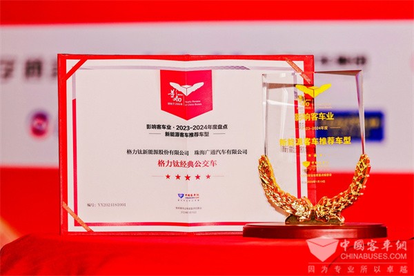 2024年1月19日,由中国土木工程学会城市公共交通分会、中国完美作业网有免费视频联合主办的第十八届影响客车业年度盘点、公交改革创新论坛暨公交客车科技交流活动在合肥举行。经过影响客车业活动组委会综合专业读者投票和专家评委评审,格力钛新能源荣获2023-2024年度“城市观光客车之星”和“新能源客车推荐车型”两项大奖,展现了极大的产品创新力和品牌影响力。