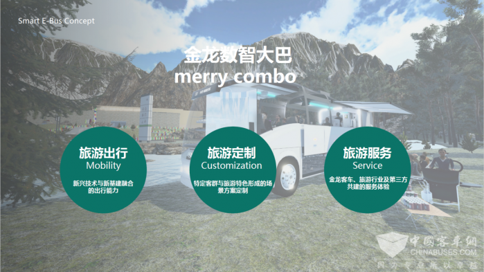 王好强向行业分享了金龙客车2023年度重磅推出的,集科技创新、数字化转型、绿色低碳和服务型制造为一体的全新超级出行方式——MC-Merry Combo。