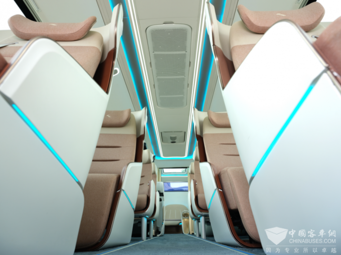 王好强表示,金龙纯电客车彻底打破传统运营模式,从用户体验角度出发进行设计,根据不同的使用场景、用户动线,定义内饰功能。
