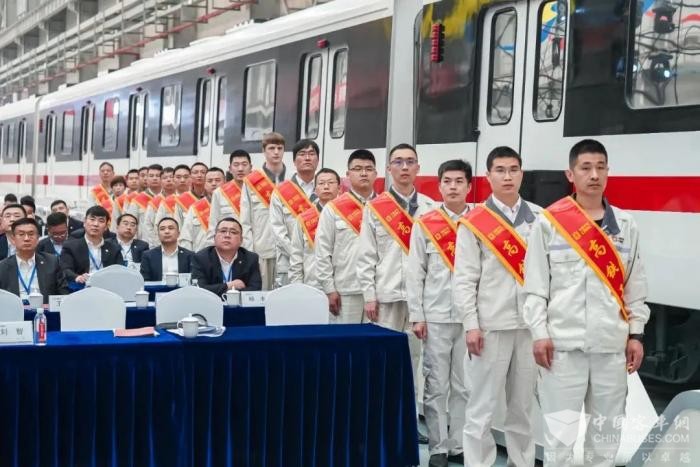 2023年5月6日,中国中车产业工人队伍建设改革深化推进会在江苏常州隆重召开。会议隆重表彰了58名第二届高铁工匠。中车电动公司技能人才肖乾亮(右三)光荣上榜。