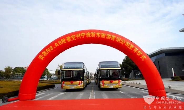 每年春运都是对交通系统的“大考”。今年春运,探亲流、务工流、旅游流、学生流“四流”高位叠加,保通保畅压力加剧。春运首日,宁波浙东旅游客运有限公司(以下简称“宁波浙东”)采购了一批安凯N8、A8高端客车,以提升运力应对春运“四流”,有效护航温暖归途。