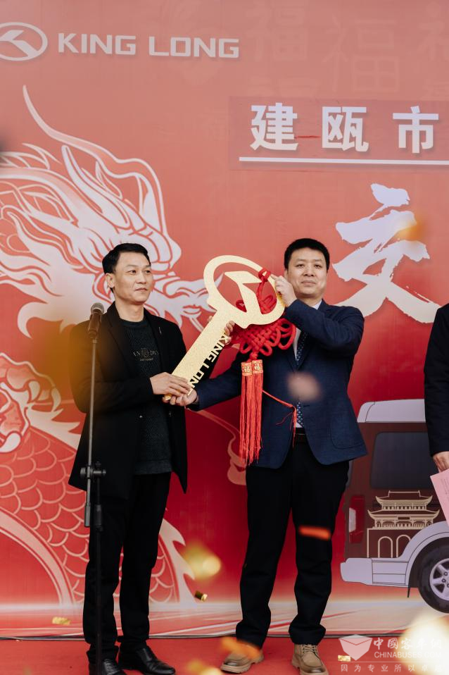 为构建完善的公共交通体系,提升公交服务供给能力,填补城区微定制公交线网空白,解决社区居民出行“最后一公里”难题,2024年2月6日,厦门金龙联合汽车工业有限公司(以下简称“金龙”)与建瓯市公共交通有限公司(以下简称“建瓯公交”)举办了交车仪式。建瓯市市长吴伟,建瓯市领导林威鸣、张年雄,福建汽车工业集团副总经理林源等领导出席此次活动。