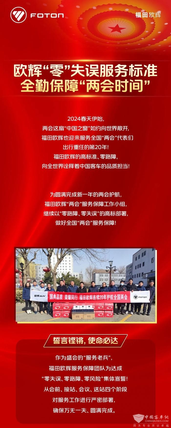 2024春天伊始,两会这扇“中国之窗”如约向世界敞开,福田欧辉也迎来服务全国“两会”代表们出行重任的第20年!福田欧辉的高标准、零故障,向全世界诠释着中国客车的品质担当!