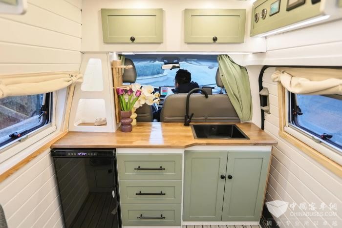 进入生活区,您会立刻被这里舒适温馨的氛围所吸引。车内以柔和的白色为基础色调,细节处搭配豆绿色和浅木色作为点缀,既符合现代简约的审美趋势,又能带给您家的温馨感受。